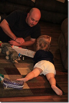 Abbie is pretty close to Mark’s brother, Ryan. She’s ALWAYS talking about Uncle Ryan. Ryan lives in Italy right now also, as he is studying in Rome to become a priest. So we get to see him a few times a year and Abbie loves it when Uncle Ryan comes to visit. We got to see Ryan (and the rest of Mark’s family) at Mark’s parents house before Ryan headed back to Italy. Unfortunately Ryan threw his back out while putting Abbie in to her car seat, so I feel REALLY guilty about that, especially since the 9+ hour flight back to Italy was pretty miserable for him and he could barely walk the whole time we were visiting. Sorry Ryan! I feel so bad!