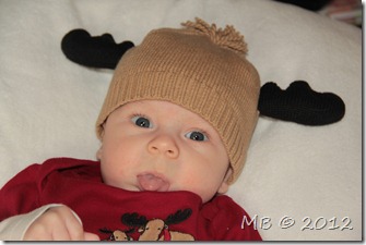 Just in the past week Ben has started laughing, which is SO much fun. He’s quite the ticklish little guy apparently. And even better, Mark was right there the first time he laughed and we got it on video! He also just rolled over from front to back for the 2nd time. He did it the first time when he was around a month old, but he was really mad and I think he surprised himself. This time I watched him work at it and he just gracefully rolled over to his back and started smiling at me.